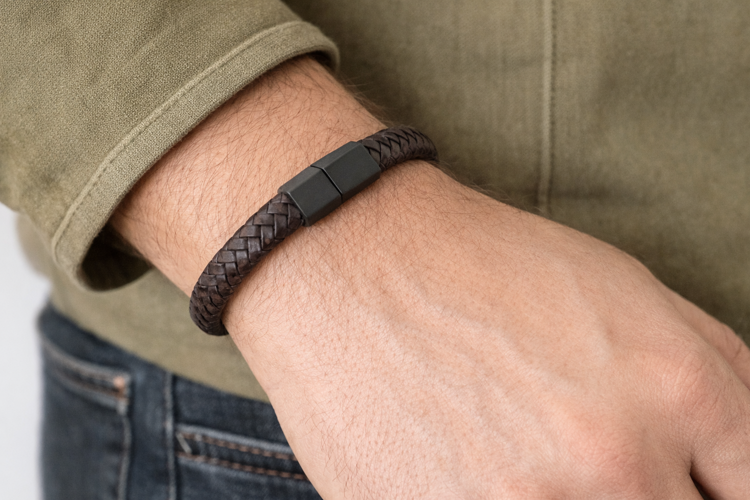 Kahverengi Örgü Deri Bileklik